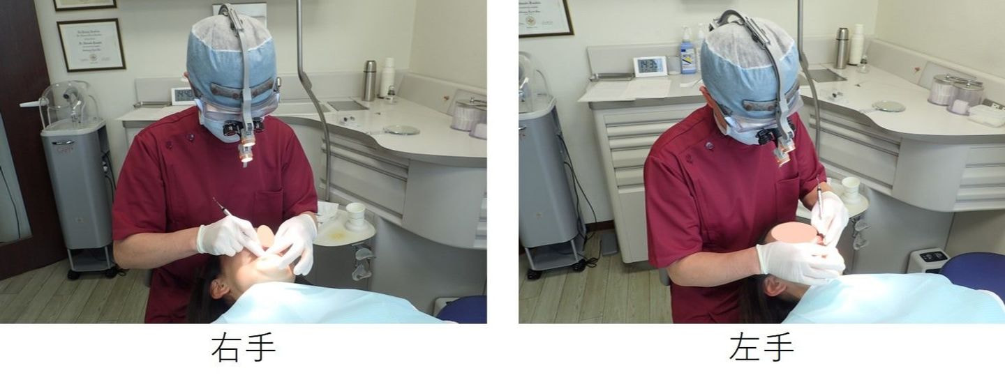 左右両方が使えることで、右手だとなかなか届かないところにも左手を使うことで楽に届かすことができたり、治療するときに患者さんの頬を引っ張るのも最小限にできたりします。これはむちゃくちゃ便利です。