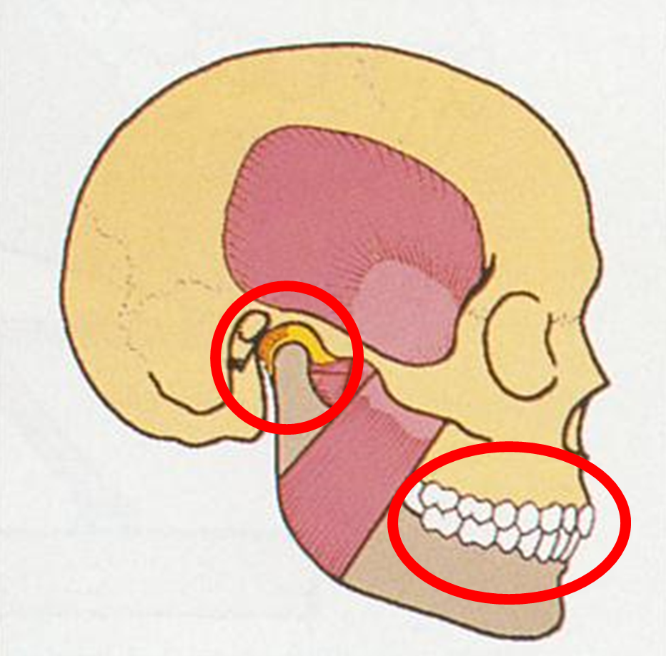 「力のバランスが安定している」という状態は、基本的に顎にかかるその大きな力をできるだけ多くの歯で支えるということになるのですが、そこには顎の関節の位置が関係します。